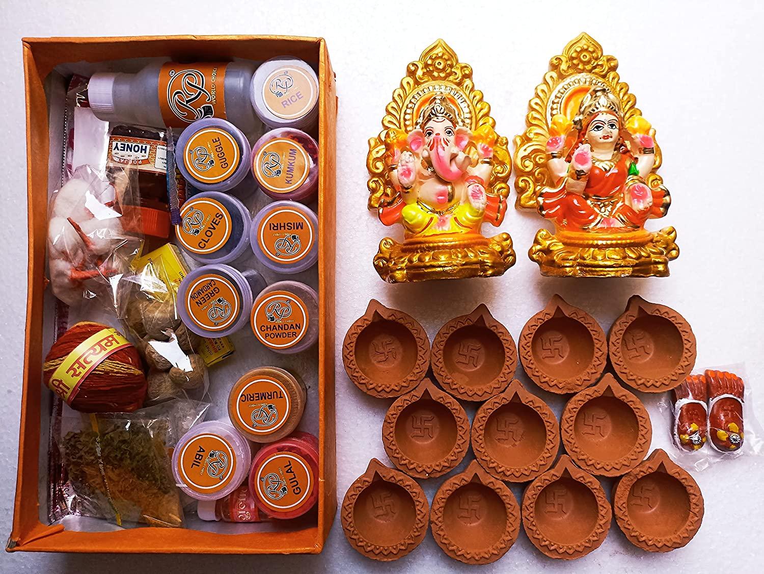 Complete puja kit for Diwali Lakshmi–Ganesh Puja with all essential items.